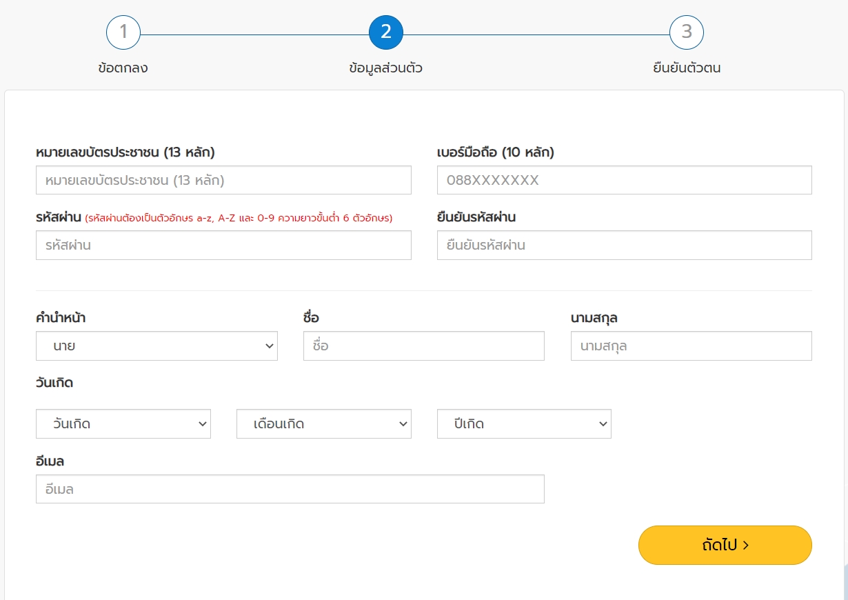 - กรอกข้อมูลส่วนตัว และกดถัดไป
