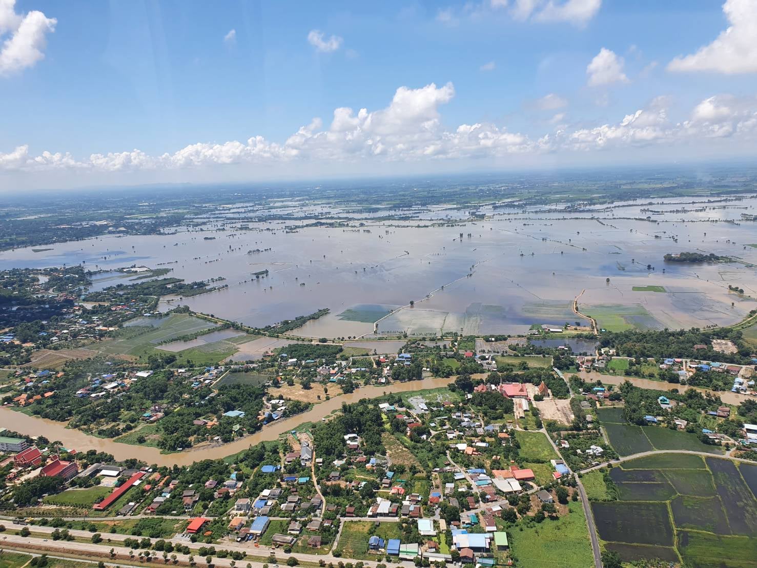 สำหรับสถานการณ์น้ำในลุ่มน้ำเจ้าพระยา–ลุ่มน้ำป่าสัก ปริมาณน้ำหลากจากตอนบนของลุ่มน้ำเจ้าพระยาได้ไหลผ่านเขื่อนเจ้าพระยาในอัตรา 2,775 – 2,800 ลูกบาศก์เมตร (ลบ.ม.) ต่อวินาที และปริมาณน้ำหลากสูงสุดจากเขื่อนป่าสักชลสิทธิ์ได้ไหลผ่านเขื่อนพระรามหกสูงสุดในอัตรา 762 ลบ.ม.ต่อวินาที และในวันนี้ ปริมาณน้ำจะไหลหลากรวมกันผ่าน อ.บางไทร จ.พระนครศรีอยุธยา ในเกณฑ์สูงสุด 3,050 - 3,150 ลบ.ม.ต่อวินาที โดยจะไหลออกสู่อ่าวไทย ในช่วงวันที่ 8-10 ต.ค. 64