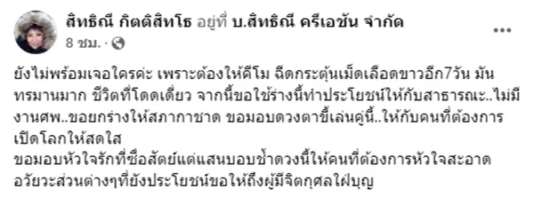 "อิ๋งอิ๋ง สิทธิณี" เคลื่อนไหวล่าสุด ประกาศขอบริจาคร่างกาย ไม่มีงานศพ