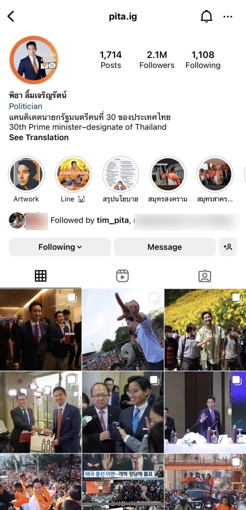 - IGที่ใช้กับพรรคการเมืองของทิมไม่ได้กดติดตามแอฟ แต่กดถูกใจภาพของแอฟ ซึ่งเขาต้องค้นถึงจะเจอ ให้อารมณ์ประมาณว่า ไม่ได้ฟอลแต่ส่องอยู่
