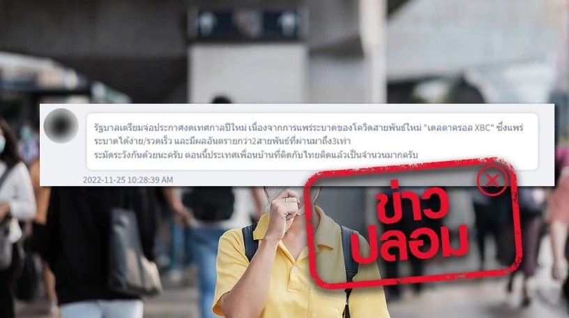 จากกรณีที่มีการส่งต่อข้อความโดยระบุว่ารัฐบาลเตรียมประกาศงดเทศกาลปีใหม่ เนื่องจากการแพร่ระบาดของโควิด เดลตาครอล XBC ทางกรมประชาสัมพันธ์ สำนักนายกรัฐมนตรี ได้ตรวจสอบข้อมูลและชี้แจงว่ากระทรวงสาธารณสุขมีการเฝ้าระวังทุกสายพันธุ์ และขณะนี้ยังไม่มีรายงานพบสายพันธุ์เดลครอน XBC ในเทศไทย และยังไม่มีเหตุการณ์เสนอให้รัฐบาลงดเทศกาลปีใหม่